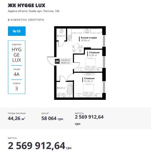 Секція 4а, 3 поверх, 2 кімнати, N.10.