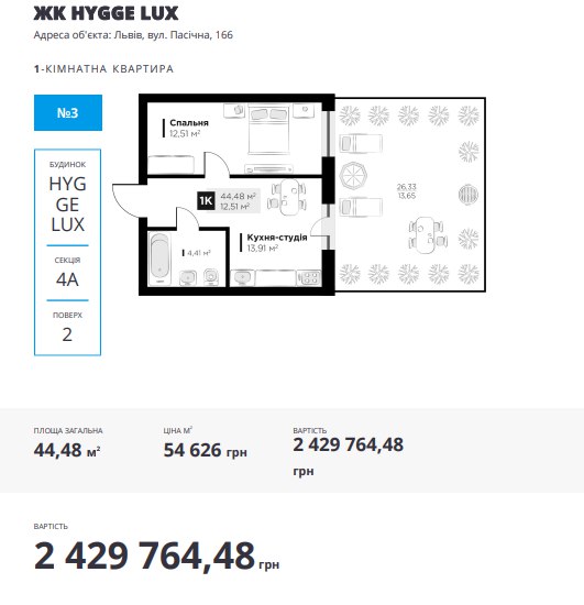 Секція 4а, 2 поверх, 1 кімнати, N.3