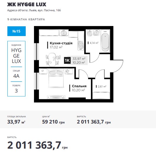 Секція 4а, 3 поверх, 1 кімнати, N.15